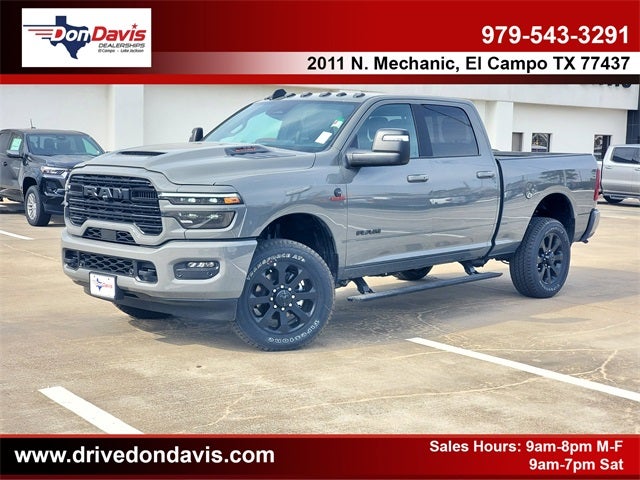Ceramic Gray Clearcoat 2026 Ram 2500 Laramie 4WD 8-Speed Automatic 6.7L I6 No Games, No Gimmicks, and No Addendums (Premium Lifted Trucks Excluded)! Just honest family run business. At Don Davis we never charge over MSRP (SPECIALTY VEHICLES EXCLUDED, and you can rest assured you're getting the best price every time. Price- The Information Presented on this website, specifically pricing details on new and used cars, aims to be accurate and reliable. Despite our efforts to maintain precision, we offer no guarantees or warranties, either express or implied, concerning accuracy or suitability of pricing information. Due to market conditions and other factors, all listed figures are subject to change immediately without notice. Therefore, it is imperative to verify all pricing and details directly with the dealer. We expressly disclaim all liability for any loss, damage or inconvenience that may arise from the use of or reliance upon the information contained on this website. $1000 - 2026 National Bonus Cash . Exp. 02/02/2026